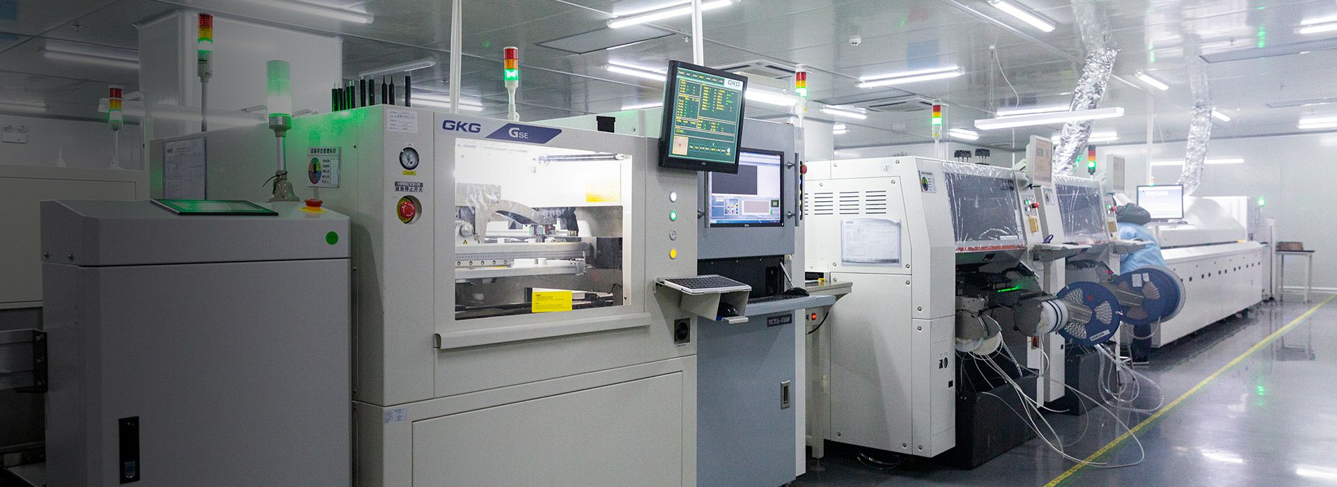 高精密半自动锡膏印刷机8台,在钢网的配合下,锡膏或贴片胶精准漏印到PCB的焊盘。